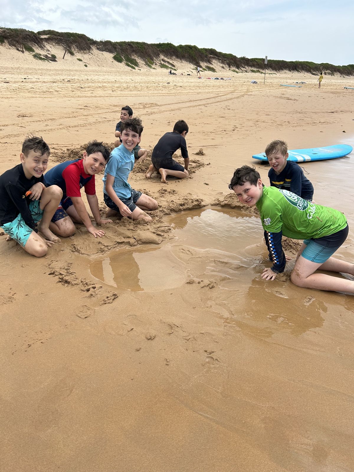 A little bit after morning tea, we ran straight back for boogie boarding and by the time we started the waves were so much better than when we were surfing. The year five and sixes had all the good waves for surfing. It was so unfair but at least we got good waves for boogie boarding. After that we all went to get changed and then went to have lunch.
