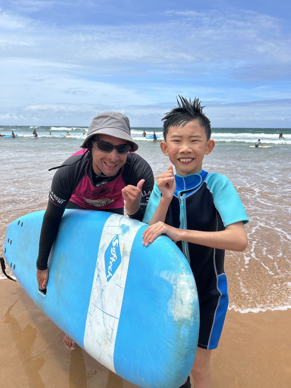 All the boys from three to six were split into two groups, one group was just years three and four and the other was years five and six. First up the instructors taught us how to surf and then gave us safety tips and rules. Then we got into partners and then years three and four went to get a surfboard while year five and six went to get boogie boards. Then years three and four walked back down to the beach and put the surfboards down on the sand. The instructors gave us a demonstration on how to surf and we all got ready. The water was very cold, especially at first and when you got out of the water. An instructor took you out into sea with the surfboard and when there was a big wave the instructor turned you around and then waited for the right time to tell you to stand up on the board. It was really, really fun.