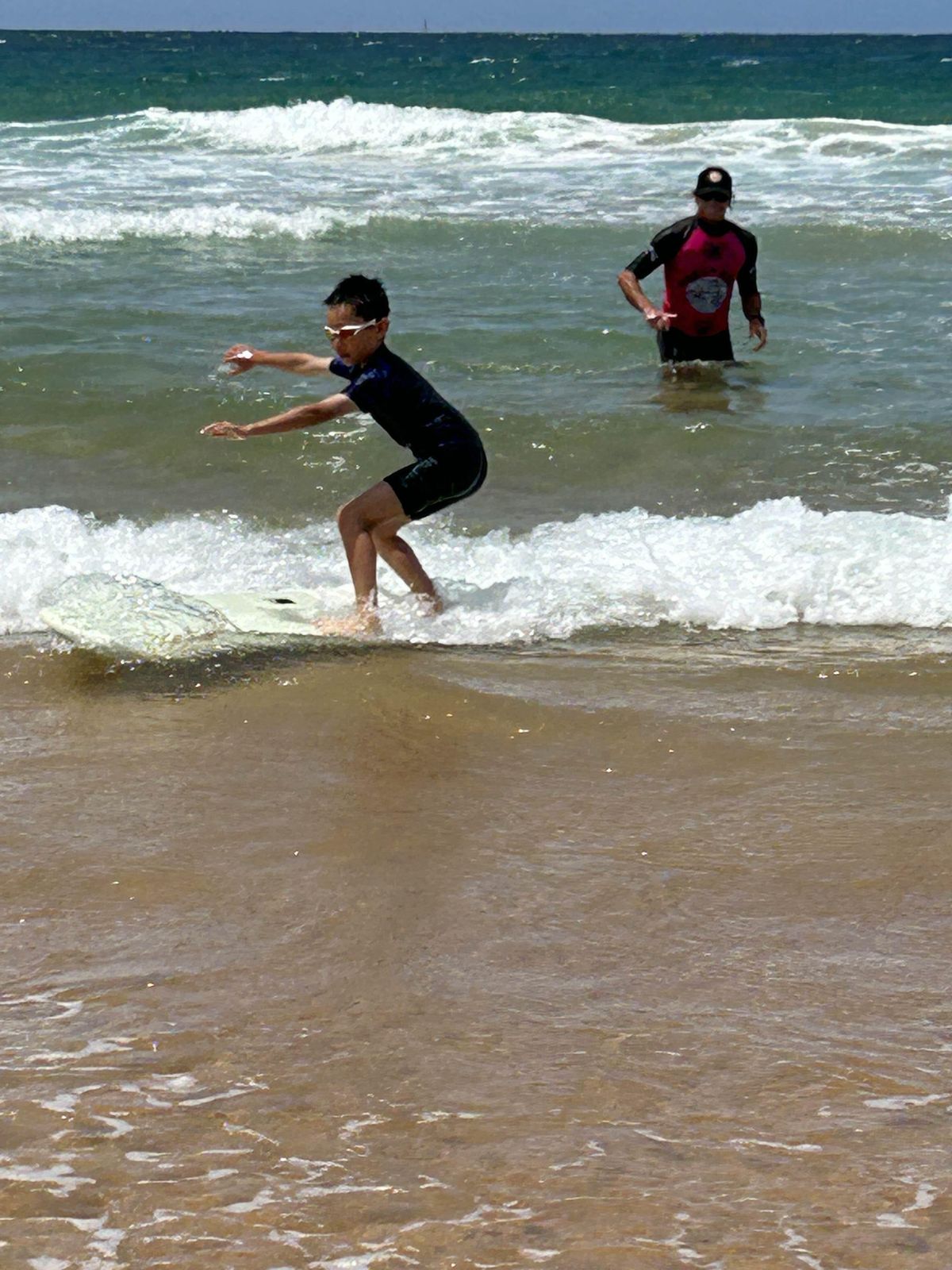 The purpose of the day was not only to teach us how to surf but about how to be safe in the water. This is important because if we ever get stuck in a rip we need to know how to get out safely. Many people enjoyed learning how to surf and boogie board. Some people managed to stand up on the surfboard straight away whilst others took a few tries, but by the end most people were able to stand up. The instructors were very nice and very helpful and helped us stand up on the board.